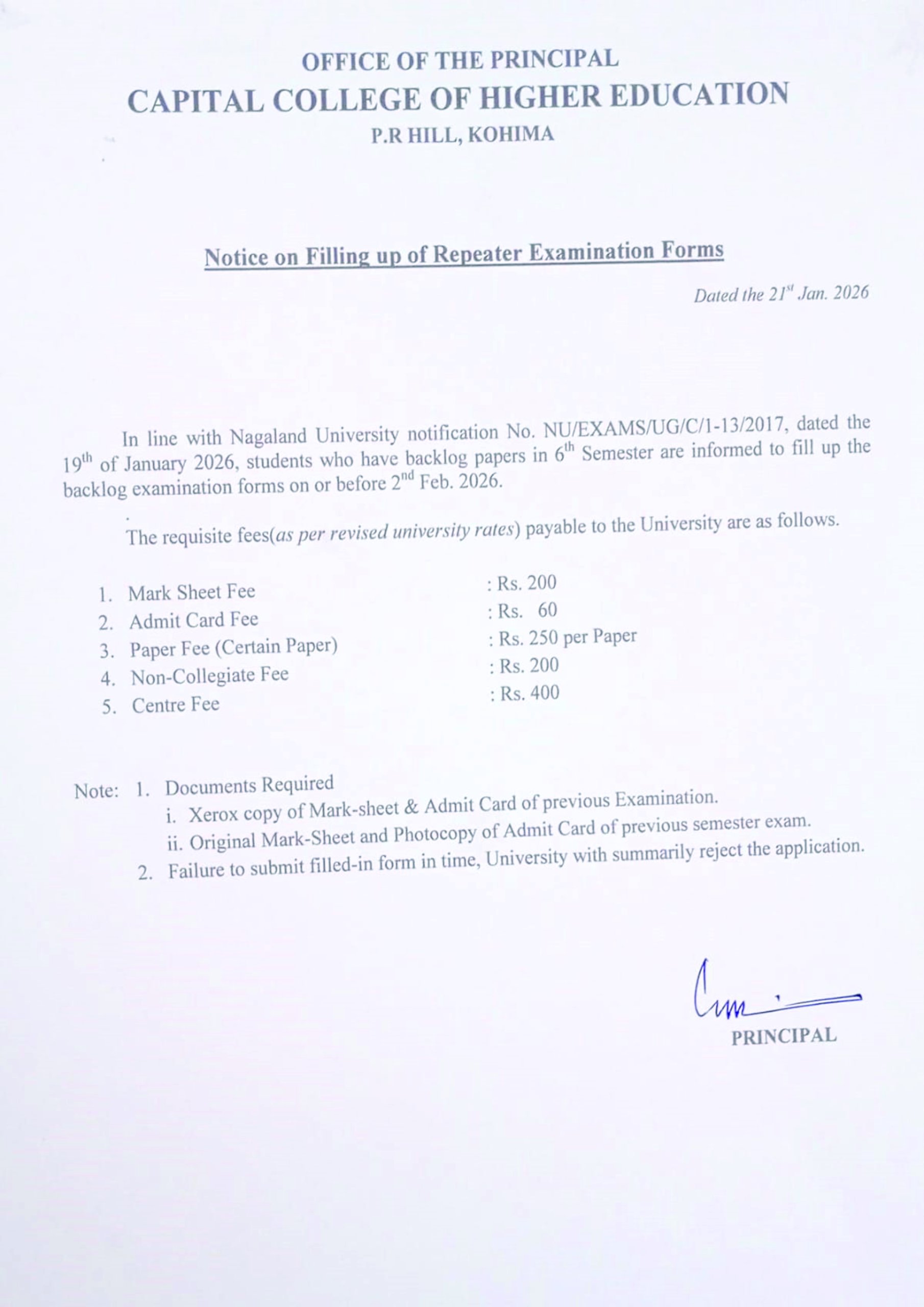 Notice for 6th Semester 2026 Backlog Examination form fill up